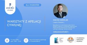 Zapraszamy studentów prawa na zajęcia dotyczące praktycznych aspektów postępowania cywilnego, w szczególności sporządzania środków zaskarżenia. We wtorek, 31 marca o godz.