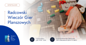 Okręgowa Izba Radców Prawnych w Warszawie zaprasza na radcowski wieczór gier planszowych, który odbędzie się 1 grudnia 2025 r. (poniedziałek) w godzinach 18:00–22:00 w Centrum Konferencyjno-Szkoleniowym OIRP w Warszawie przy ul.