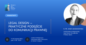 OIRP w Warszawie zaprasza radców prawnych oraz aplikantów radcowskich do udziału w dwudniowych warsztatach poświęconych tematyce Legal Design, które odbędą się w dniach 19 i 20 listopada 2025 r. w godz. 17:00–20:30.