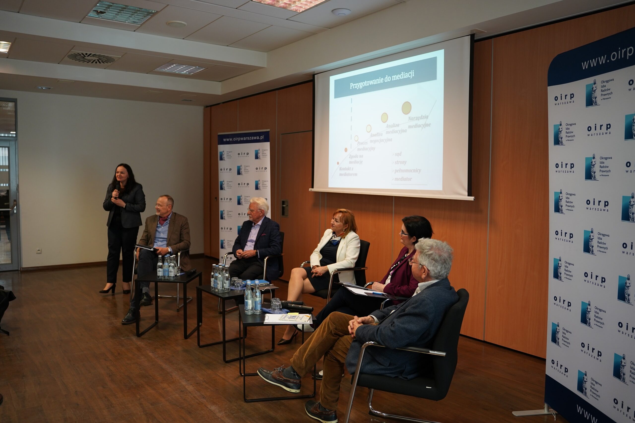 W spotkaniu, realizowanym w ramach cyklu „Praktycy praktykom”, wzięli udział: Agnieszka Owczarewicz, Sędzia Sądu Okręgowego, r. pr. Maciej Bobrowicz, Wiceprezes Centrum Mediacji Lewiatan, r. pr. Tomasz Maliński, Dyrektor Ośrodka Mediacji przy Okręgowej Izbie Radców Prawnych, r. pr. Małgorzata Miszkin-Wojciechowska, Dyrektorka Centrum Mediacji Lewiatan oraz mec. Roman Rewald, Prezes Centrum Mediacji Lewiatan.