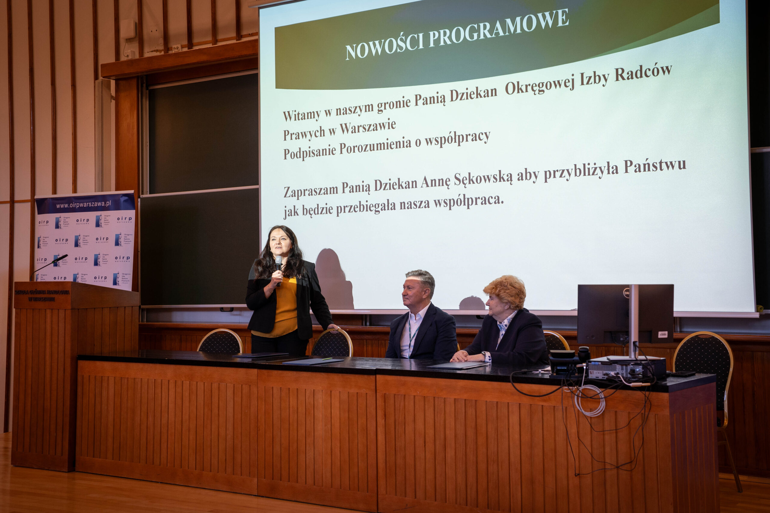 W dniu inauguracji roku akademickiego 2025/2026 w Uniwersytecie Trzeciego Wieku Szkoły Głównej Handlowej, mając na uwadze potrzebę budowania świadomości prawnej także osób starszych, OIRP w Warszawie zawarła porozumienie o współpracy ze Stowarzyszeniem UTW SGH. Dokument sygnowały: Dziekan Rady OIRP w Warszawie r. pr. Anna Sękowska oraz Prezes Zarządu Stowarzyszenia UTW SGH, pani Krystyna Lewkowicz.