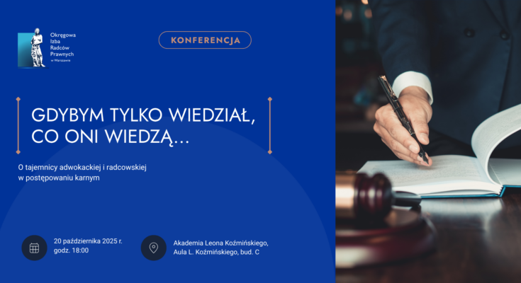 Krajowa Izba Radców Prawnych, Instytut Wymiaru Sprawiedliwości, Wydział Prawa i Administracji Uniwersytetu Gdańskiego oraz Okręgowa Izba Radców Prawnych w Gdańsku zapraszają środowisko prawnicze – w szczególności radców prawnych, adwokatów, sędziów, prokuratorów...
