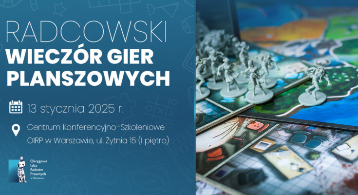 Zapraszamy wszystkich radców prawnych i aplikantów radcowskich na kolejne spotkanie w ramach „Radcowskich wieczorów gier planszowych”, które odbędzie się 13 stycznia, w godzinach 18:00-22:00, w siedzibie OIRP w Warszawie, przy ul.