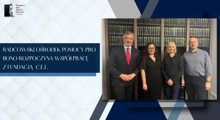 Radcowski Ośrodek Pomocy Pro Bono Izby warszawskiej oficjalnie rozpoczął współpracę z Fundacją C.E.L. Porozumienie podpisane zostało w środę, 31 stycznia 2024 r., w siedzibie OIRP w Warszawie. Na spotkaniu z przedstawicielami Fundacji C.E.L.