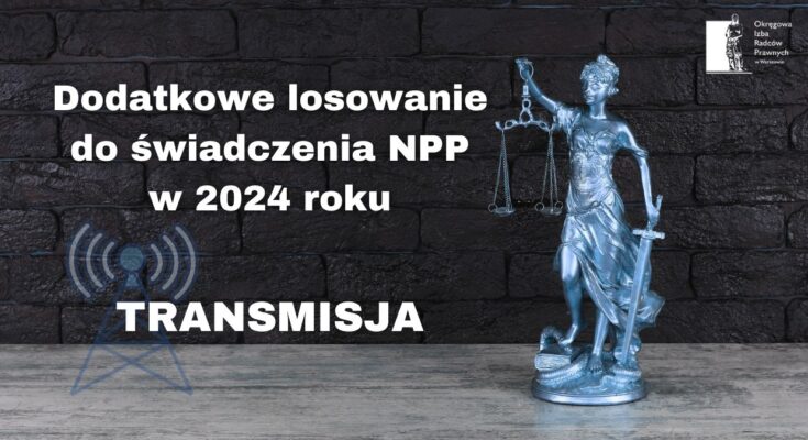 Szanowni Państwo, uprzejmie informujemy, że 9 stycznia br., odbędzie się dodatkowe losowanie do świadczenia Nieodpłatnej Pomocy Prawnej w 2024 roku.
