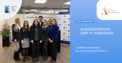Znamy nazwiska studentów, którzy będą pełnić obowiązki ambasadorów na wydziałach prawa warszawskich uczelni wyższych, promując w stołecznym środowisku akademickim zawód radcy prawnego oraz aplikację radcowską. W 2025 r.