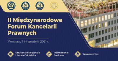 Zapraszamy na II Międzynarodowe Forum Kancelarii Prawnych, organizowane przez KIRP, OIRP we Wrocławiu oraz OIRP w Opolu w dniach 3 – 4 grudnia 2021 r. we Wrocławiu. Tematem przewodnim Forum są najbardziej aktualne tematy, m.in.