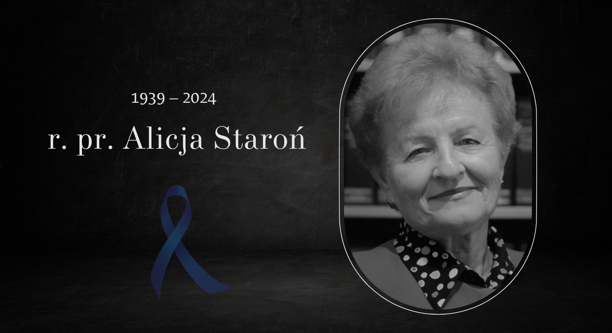 Z głębokim żalem informujemy o śmierci r. pr. Alicji Staroń, wieloletniej i zasłużonej członkini Okręgowej Izby Radców Prawnych w Warszawie oraz Krajowej Izby Radców Prawnych.