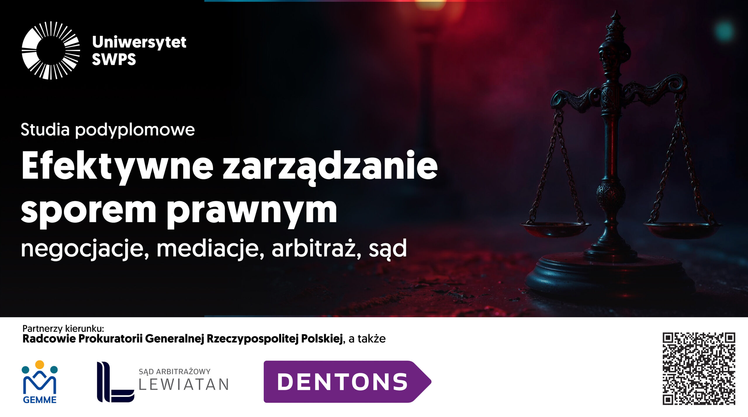 Uniwersytet SWPS zaprasza do udziału w studiach podyplomowych „Efektywne zarządzanie sporem prawnym – negocjacje, mediacje, arbitraż, sąd”. To kurs stworzony z myślą o prawnikach, menedżerach prawnych i doradcach działających w sprawach cywilnych i gospodarczych, a dla radców prawnych i aplikantów radcowskich zrzeszonych w OIRP w Warszawie przewidziana jest zniżka w wysokości 5% na czesne.