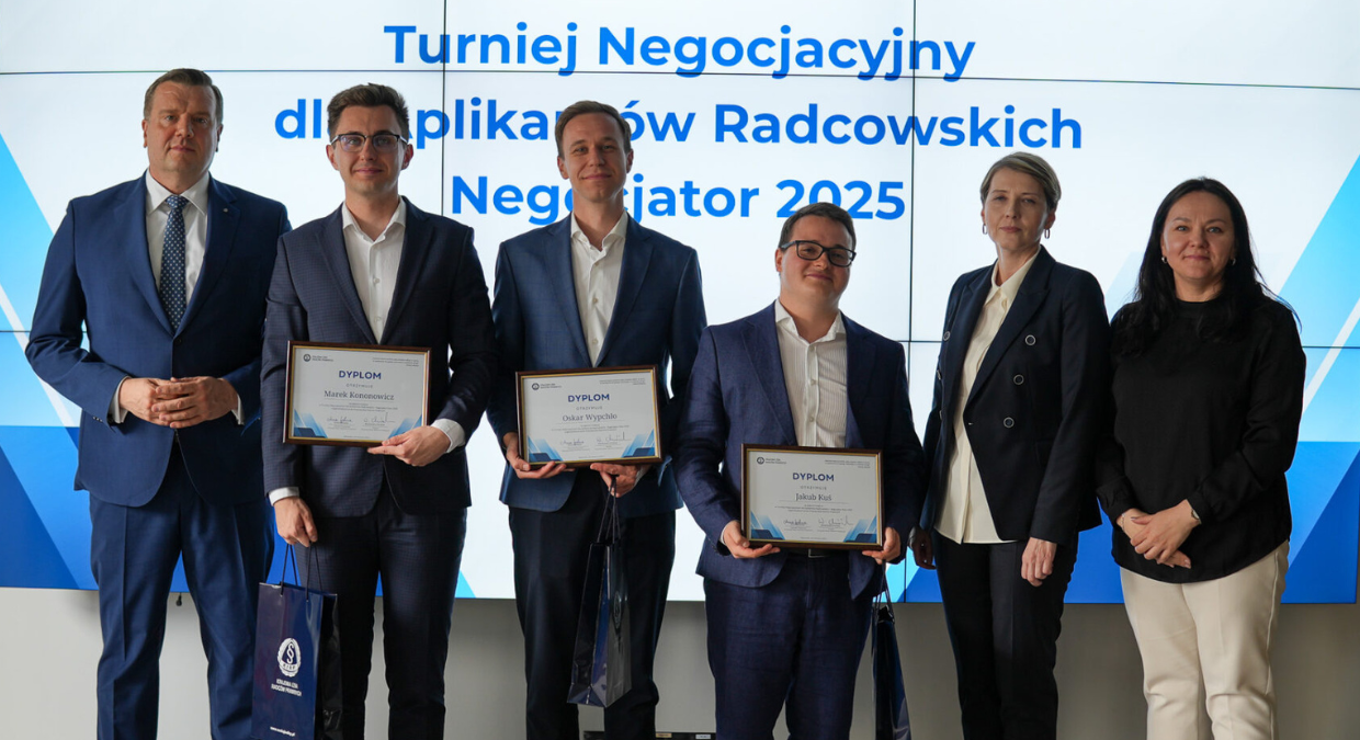 Z przyjemnością informujemy, że drużyna reprezentująca Okręgową Izbę Radców Prawnych w Warszawie zajęła drugie miejsce w finale XIII Turnieju Negocjacyjnego dla Aplikantów Radcowskich – Negocjator Roku 2025, który odbył się 23 czerwca 2025 r. w siedzibie Krajowej Izby Radców Prawnych w Warszawie.