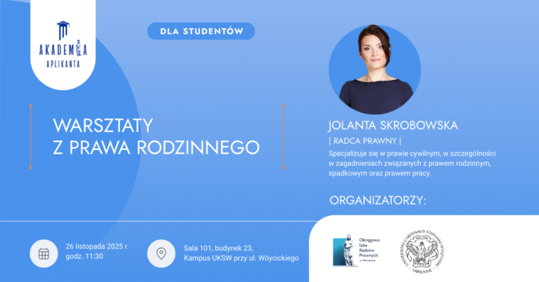 Zapraszamy do śledzenia kolejnych wydarzeń organizowanych w ramach „Akademii Aplikanta” – wkrótce odbędą się spotkania na kolejnych uczelniach warszawskich.