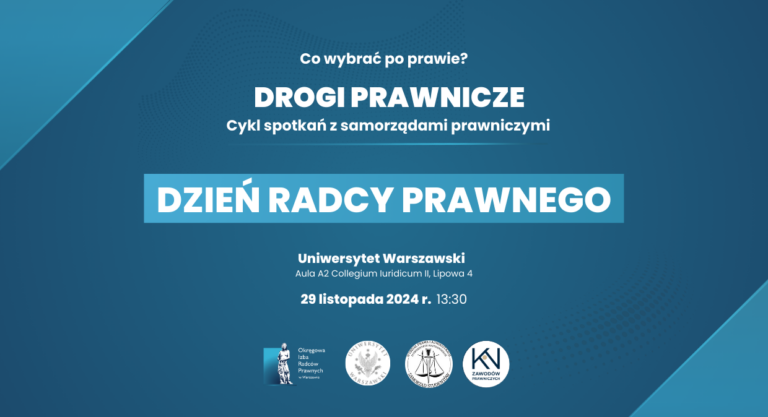 29 listopada 2024 r., w godzinach 13:30–16:30, serdecznie zapraszamy na Dzień Radcy Prawnego organizowany w ramach cyklu spotkań z samorządami prawniczymi na Uniwersytecie Warszawskim. Wydarzenie odbędzie się w auli A2 Collegium Iuridicum II przy ul. Lipowej 4 (poziom -1), organizatorem jest Koło Naukowe Zawodów Prawniczych WPiA UW.