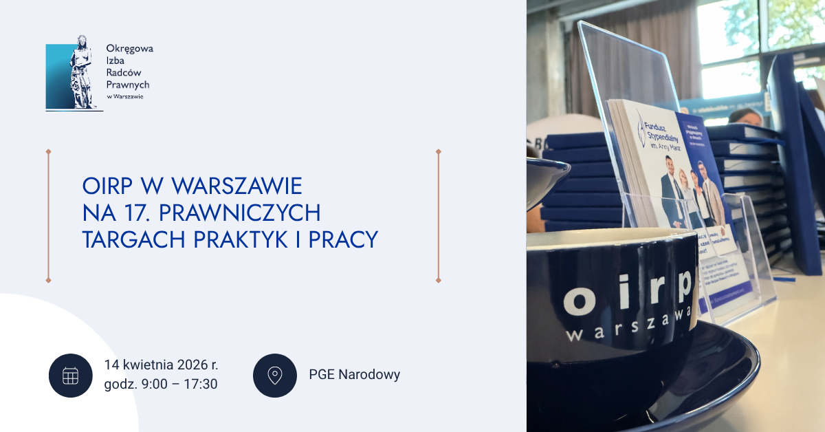 26 listopada odbędzie się „Akademia Aplikanta” OIRP w Warszawie. Zapraszamy na spotkanie, dzięki któremu studenci prawa będą mogli poznać najważniejsze aspekty prowadzenia spraw z prawa rodzinnego oraz zobaczyć, jak wygląda nauka i szkolenie na aplikacji radcowskiej w Izbie warszawskiej – to doskonała okazja, by poznać metody pracy, z jakimi na co dzień mają do czynienia aplikanci radcowscy.
