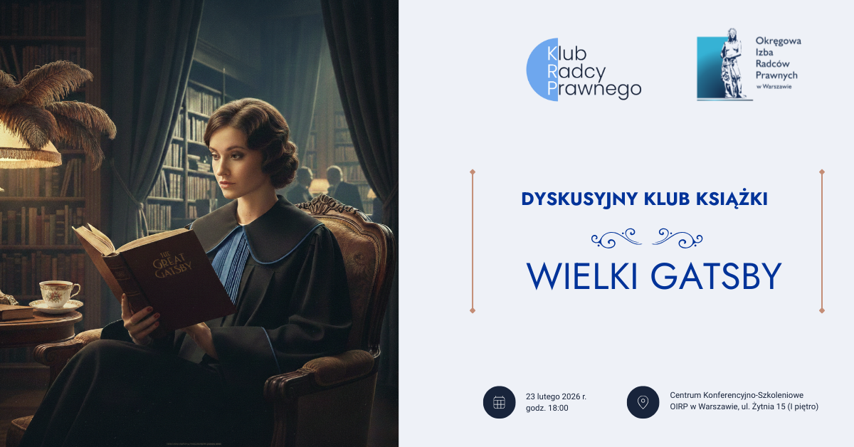 Czy w codziennym biegu między rozprawami a pisaniem pism procesowych jest miejsce na literacką pauzę? W Klubie Radcy Prawnego wierzymy, że tak. Już 23 lutego o godz. 18:00 zapraszamy wszystkich radców prawnych i aplikantów do naszej siedziby na inauguracyjne spotkanie Dyskusyjnego Klubu Książki.
