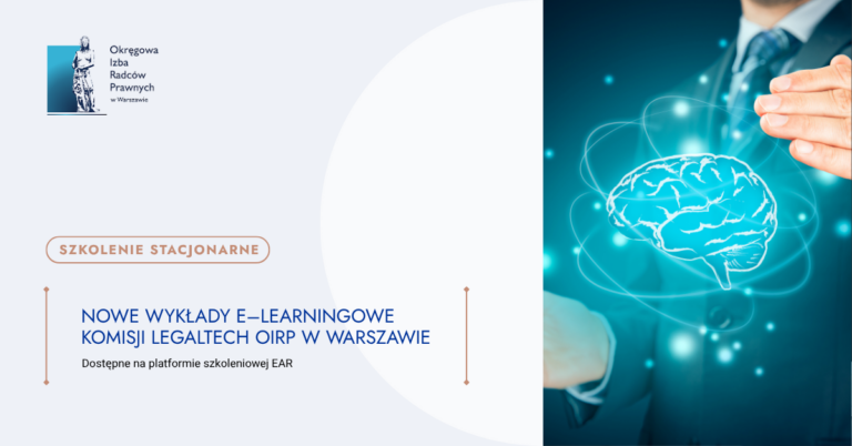 Komisja LegalTech OIRP w Warszawie przygotowała zestaw szkoleń e-learningowych poświęconych tematyce sztucznej inteligencji dla radców prawnych i aplikantów radcowskich. Wykłady dostępne są na platformie edukacyjnej EAR w katalogu „Prawo nowych technologii”.