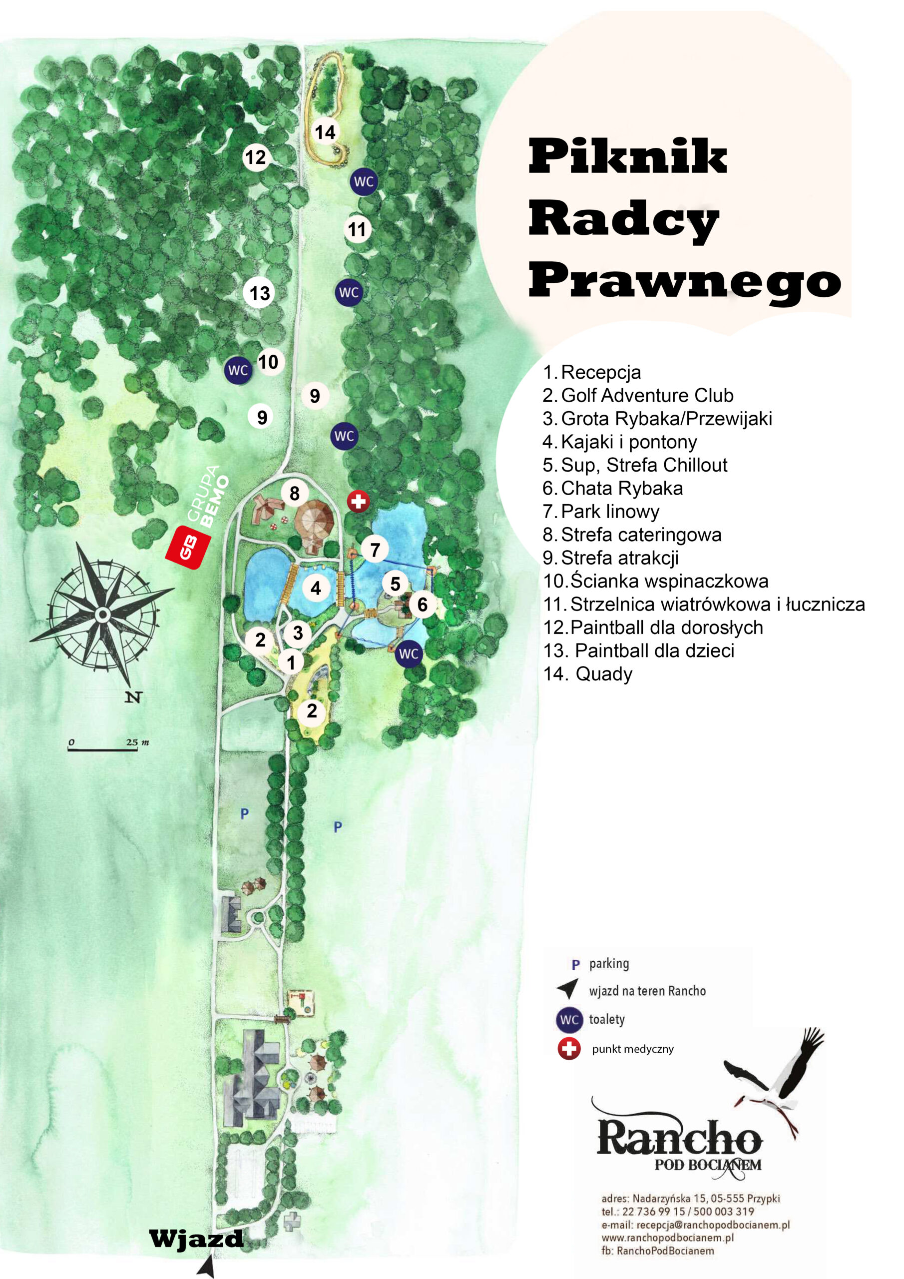 XXII Piknik Radcy Prawnego odbędzie się w sobotę 8 czerwca 2024 r. na terenie hotelu Rancho pod Bocianem, w podwarszawskich Przypkach (okolice Tarczyna), przy ul. Nadarzyńskiej 15, w godzinach od 10:00 do 16:00.