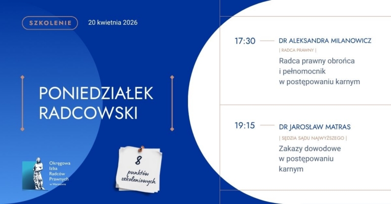 Zapraszamy na najbliższy poniedziałek radcowski – do zdobycia aż 8 punktów doskonalenia zawodowego!