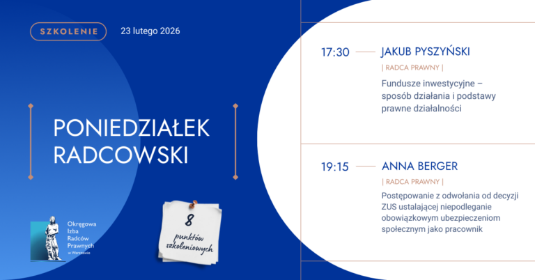 Zapraszamy na najbliższy poniedziałek radcowski – do zdobycia aż 8 punktów doskonalenia zawodowego!
