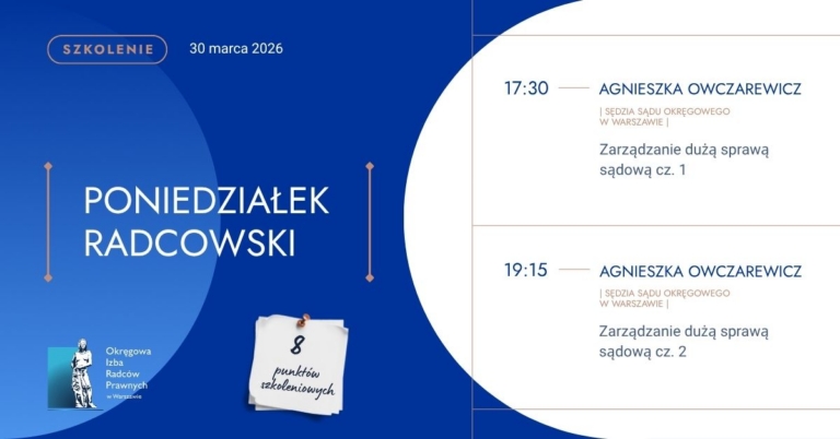 Zapraszamy na najbliższy poniedziałek radcowski – do zdobycia aż 8 punktów doskonalenia zawodowego!