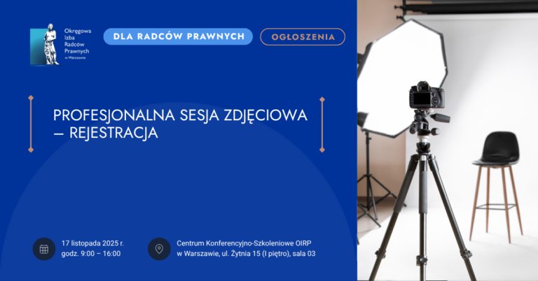 OIRP w Warszawie zaprasza radców prawnych do wzięcia udziału w bezpłatnej, profesjonalnej sesji fotograficznej, która zorganizowana zostanie w ramach promocji portalu SzukajRadcy.pl – wyszukiwarki, której celem jest wspieranie radców prawnych w pozyskiwaniu nowych klientów oraz stworzenie bazy radców prawnych ułatwiających klientom znalezienie profesjonalnego pełnomocnika.