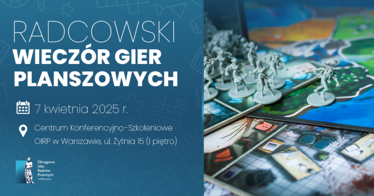Zapraszamy wszystkich radców prawnych i aplikantów radcowskich na kolejne spotkanie w ramach „Radcowskich wieczorów gier planszowych”, które odbędzie się 7 kwietnia, w godzinach 18:00–22:00, w siedzibie OIRP w Warszawie, przy ul. Żytniej 15 (1 piętro, sala nr 4).