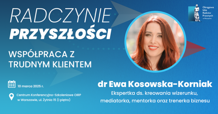 OIRP w Warszawie zaprasza do udziału w kolejnym praktycznym szkoleniu z cyklu „Radczynie Przyszłości” dot. wystąpień publicznych, które odbędzie się 10 marca 2025 r. w godzinach 17:00-20:00 w Centrum Szkoleniowo-Konferencyjnym OIRP w Warszawie przy ul. Żytniej 15 (I piętro, Sala 01).