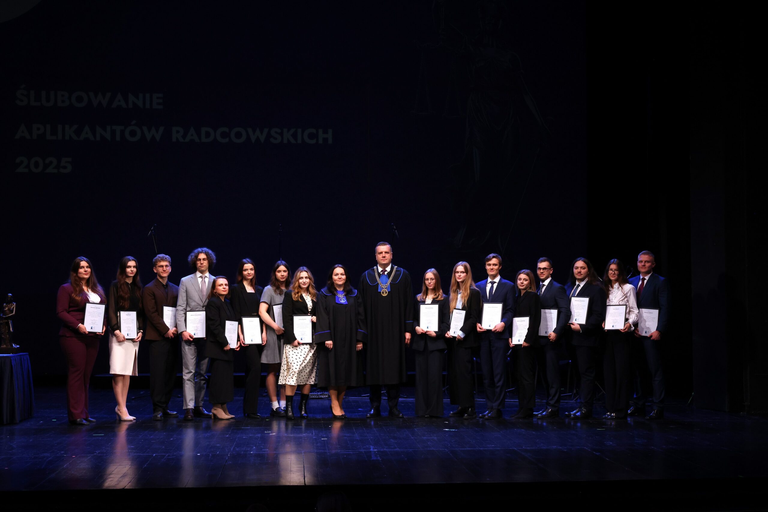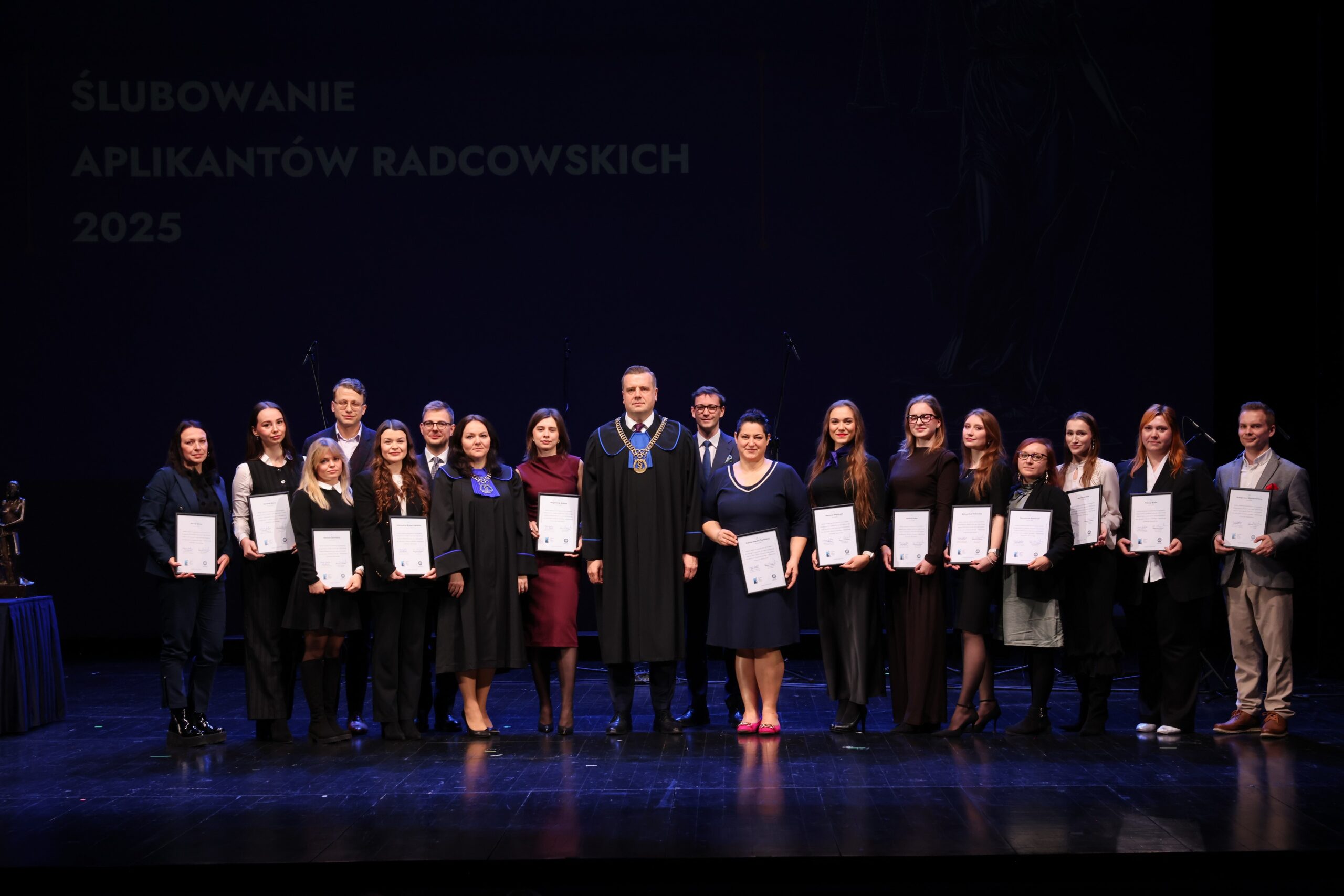 Podczas wydarzenia uhonorowano osoby, które uzyskały najwyższe wyniki z egzaminu wstępnego, a także 19 aplikantów starszych roczników szczególnie zaangażowanych w działalność samorządu radcowskiego.