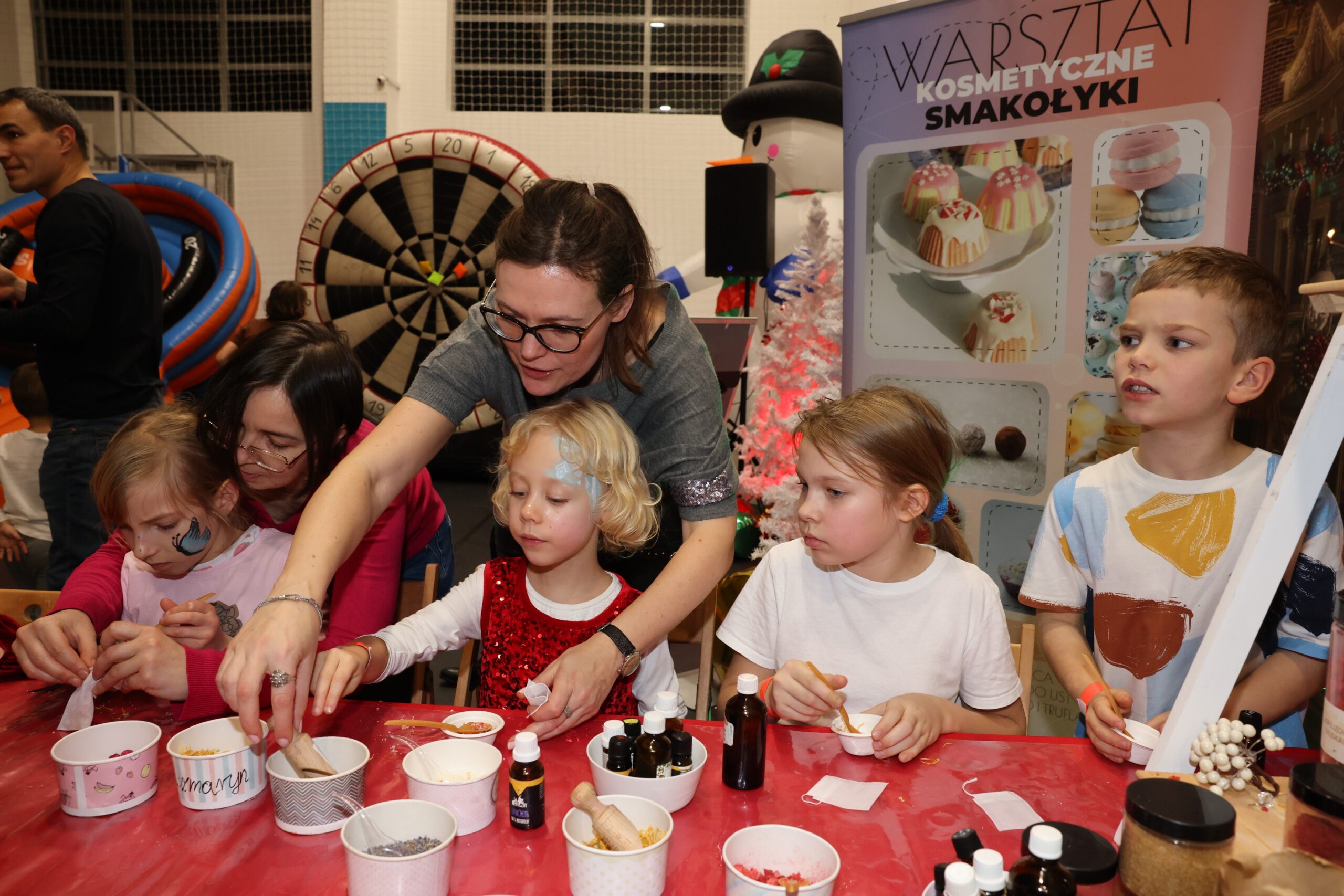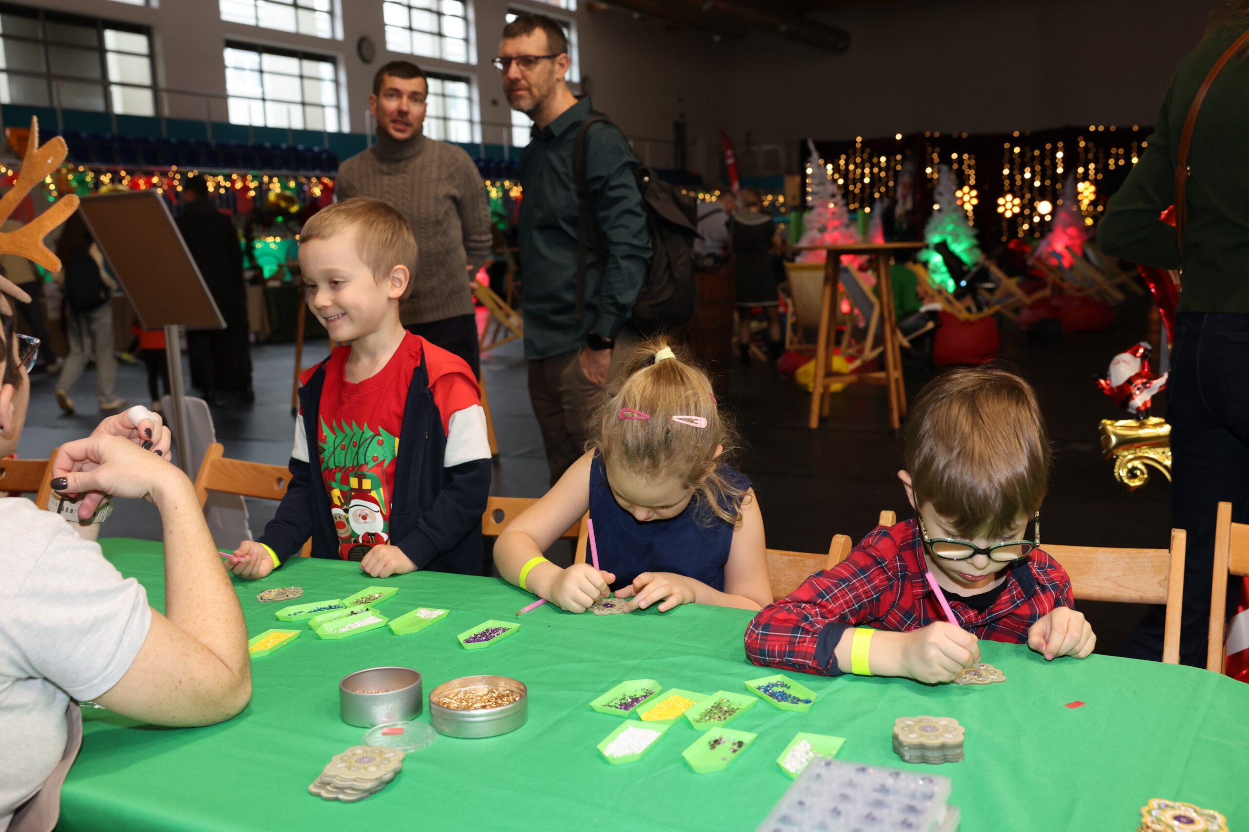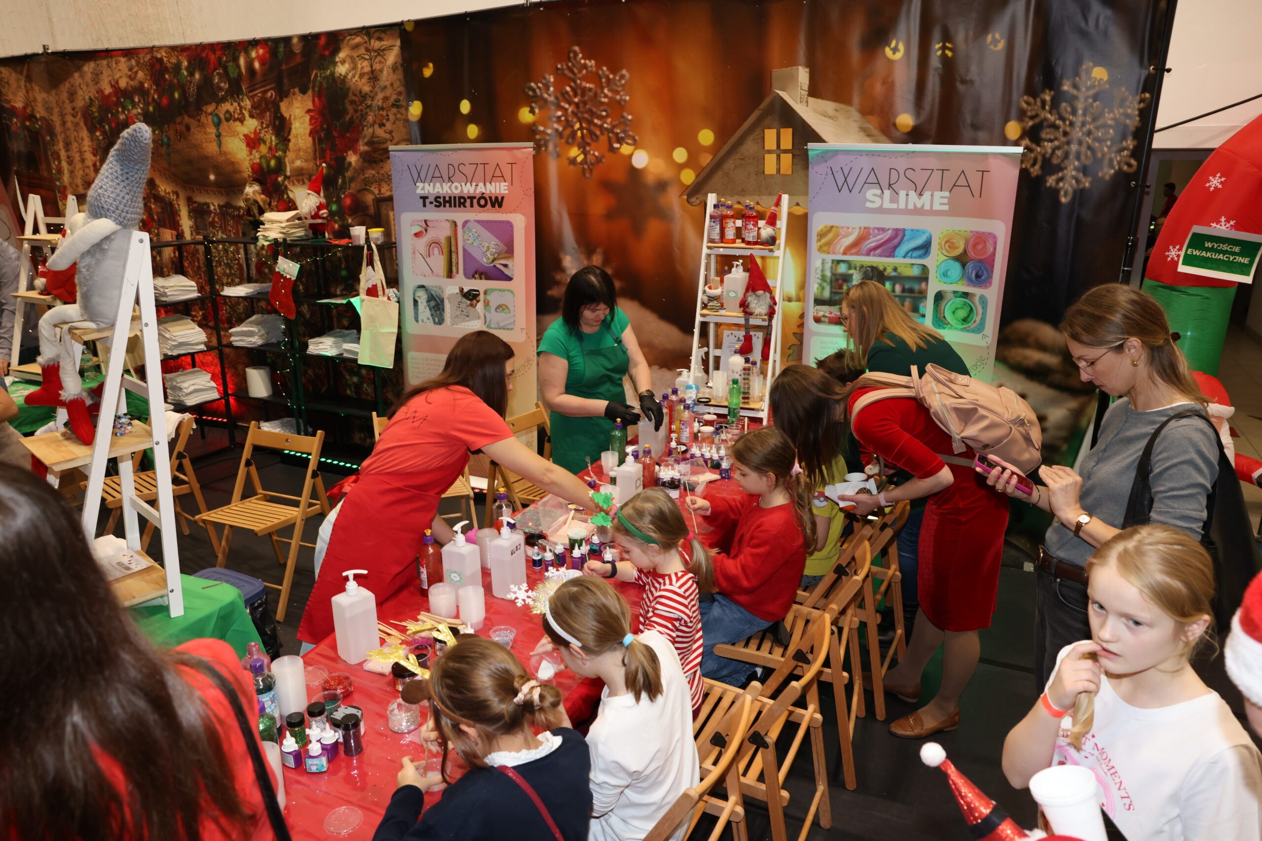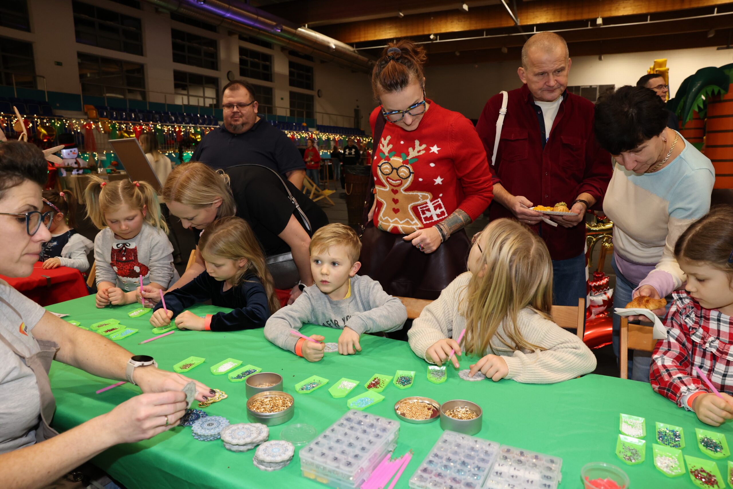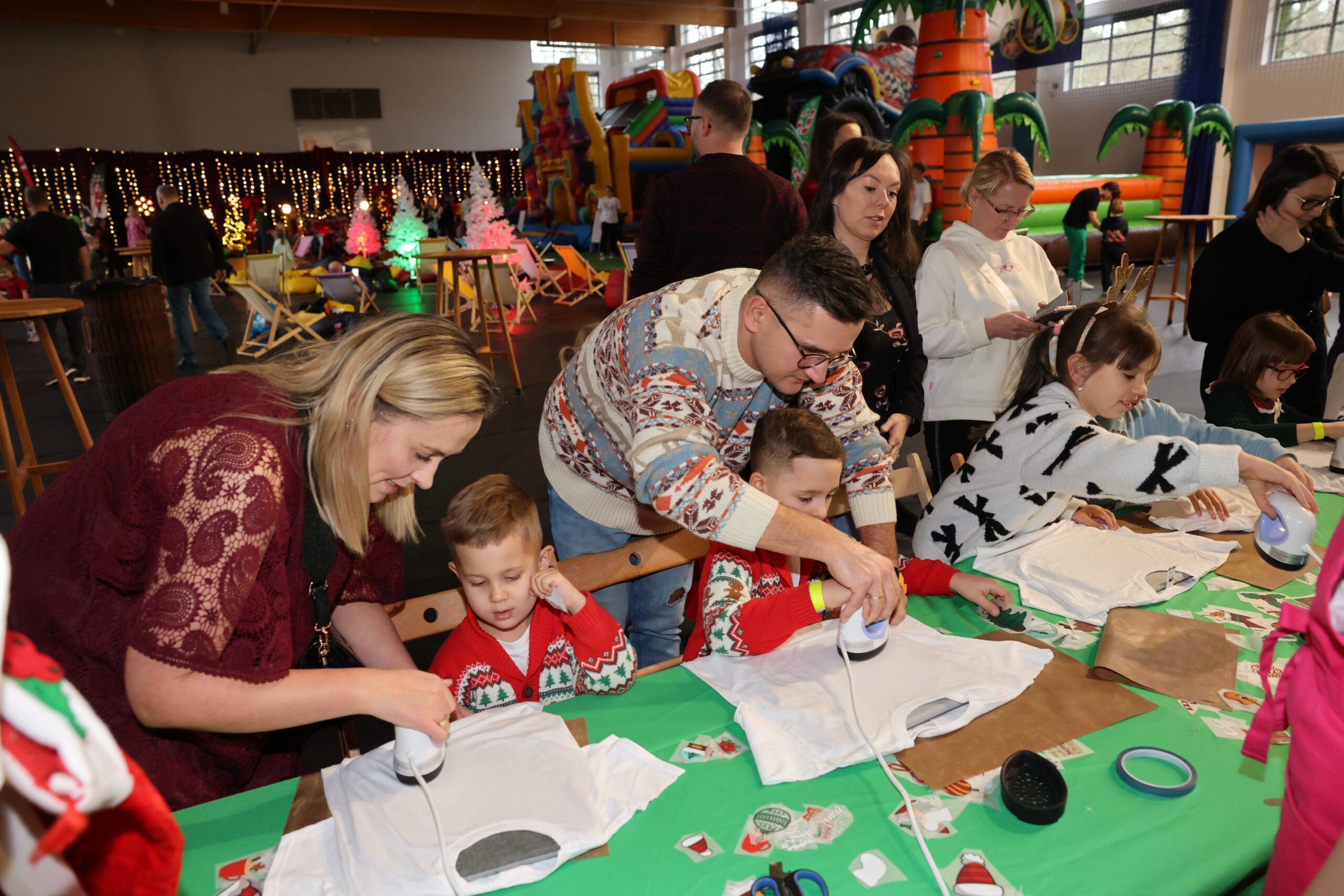 Tegoroczne spotkanie Mikołajkowe to był magiczny czas, pełen atrakcji i rozrywek, wśród których każdy mógł znaleźć coś dla siebie – niezależnie od wieku. Na młodych gości czekały świąteczne warsztaty twórcze: dzieci mogły własnoręcznie zaprojektować koszulki, przygotować zimową biżuterię, kolorowego slime’a i aromatyczne kosmetyki, a także stworzyć obrazki malowane kryształami. Miłośnicy aktywnego spędzania czasu mogli skorzystać z dmuchańców, gier zręcznościowych i strzelania z łuku. A na najmłodszych czekały zabawy w specjalnie przygotowanej strefie malucha.