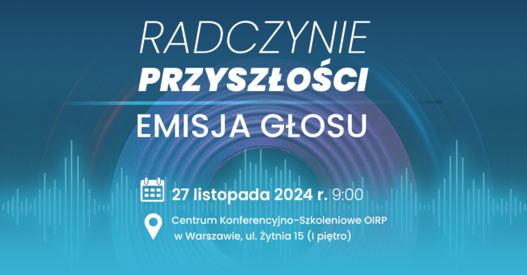 Serdecznie zapraszamy do udziału w warsztacie „Radczynie Przyszłości – Emisja głosu”, który odbędzie się 27 listopada 2024 r. o godz. 9:00 w Centrum Konferencyjno-Szkoleniowym OIRP w Warszawie, ul. Żytnia 15 (I piętro).