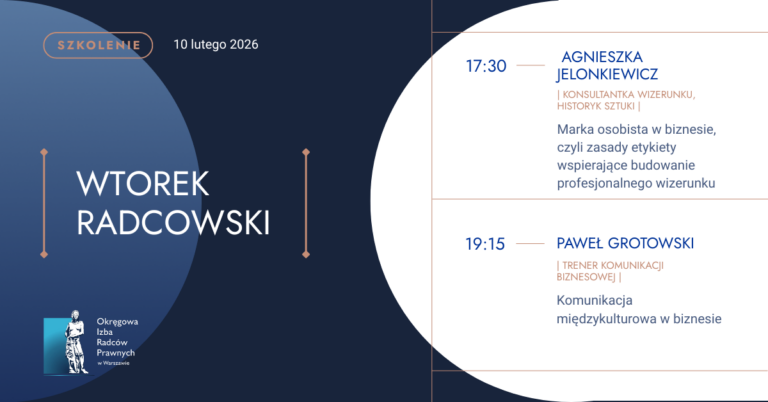 Zapraszamy na najbliższy wtorek radcowski – do zdobycia aż 8 punktów doskonalenia zawodowego!