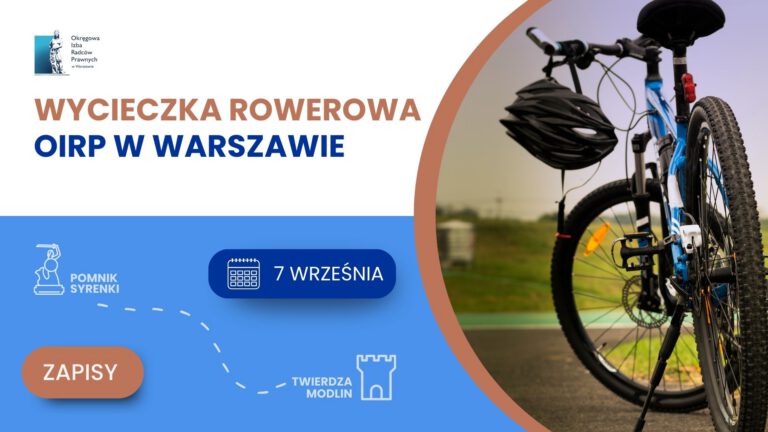 OIRP w Warszawie zaprasza radców prawnych oraz aplikantów radcowskich na kolejną wycieczkę rowerową. Tym razem wystartujemy spod pomnika Syrenki by pojechać do Twierdzy Modlin. To doskonała okazja, by połączyć ruch na świeżym powietrzu z wypoczynkiem, integracją i odkrywaniem uroków mazowieckiego regionu!