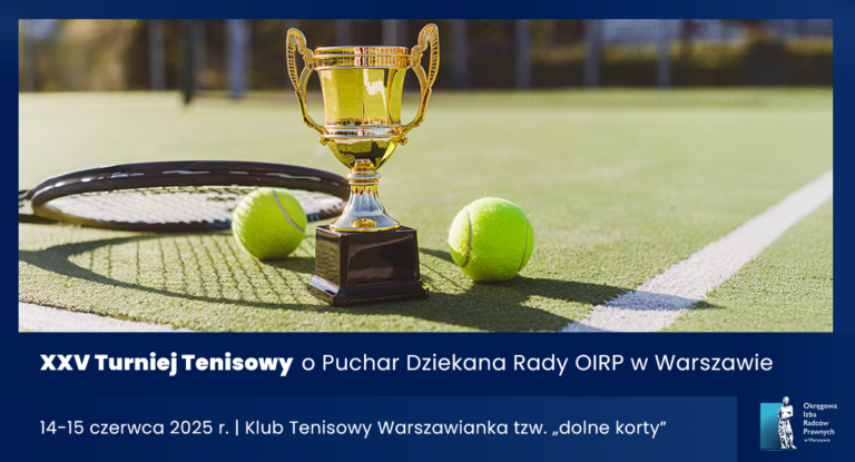 Dziekan Rady wraz z Radą Okręgowej Izby Radców Prawnych w Warszawie zapraszają Koleżanki i Kolegów radców prawnych oraz aplikantów radcowskich, a także przedstawicieli pozostałych zawodów prawniczych, do udziału w Turnieju Tenisowym o Puchar Dziekana OIRP w Warszawie.