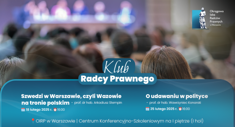 OIRP w Warszawie zaprasza wszystkich radców prawnych oraz aplikantów radcowskich na dwa inspirujące spotkania, które odbędą się w przyszłym tygodniu w ramach działalności Klubu Radcy Prawnego. Każdy z wykładów to szansa na wysłuchanie uznanych ekspertów, którzy przybliżą słuchaczom fascynujące zagadnienia z historii i polityki.
