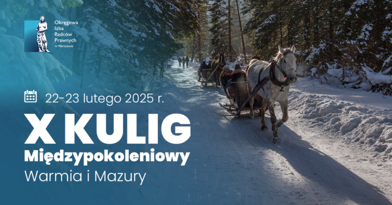 OIRP w Warszawie zaprasza radców prawnych i aplikantów radcowskich do udziału w X Kuligu Międzypokoleniowym, organizowanym przez Klub Radcy Prawnego. Nie przegap okazji na zimową przygodę w pięknych mazurskich krajobrazach, w towarzystwie koleżanek i kolegów z samorządu radcowskiego!