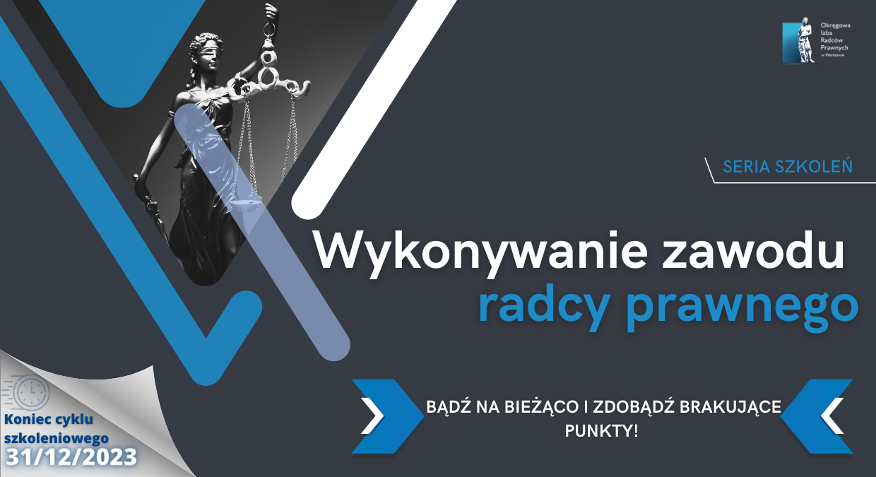 Wykonywanie zawodu radcy prawnego ewoluuje. Zmieniają się zasady świadczenia pomocy prawnej przez radców prawnych, pojawiają nowe obowiązki i nowe możliwości. Bądź na bieżąco! Z uwagi na zbliżający się koniec cyklu szkoleniowego Okręgowa Izba Radców Prawnych w Warszawie zaprasza radców prawnych na serię szkoleń.