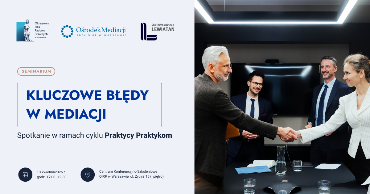 Seminarium odbędzie się 13.04. br. (poniedziałek) w godz.17.00-19:30 w Centrum Konferencyjno-Szkoleniowym OIRP w Warszawie, ul. Żytnia 15, I piętro.